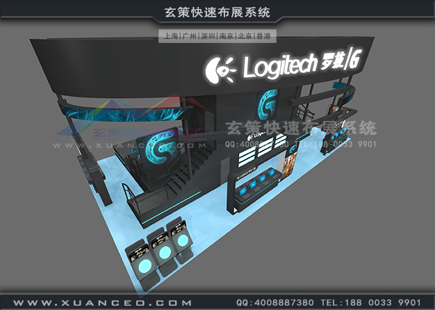 玄策展覽工廠為-羅技參加Chinajoy游戲展提供展臺制作搭建服務。