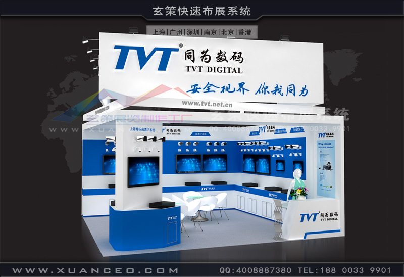 玄策展覽工廠為同為數(shù)碼參加2014年上海安博會提供展臺制作搭建服務(wù)。